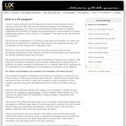 Typically, this role entails interviewing users, researching market data, and gathering UX DESIGNER UX designers are primarily concerned with how the product feels. The broad responsibility of a UX designer is to ensure that the product logically flows from one step to the next. By ... Retrieve Full Source
